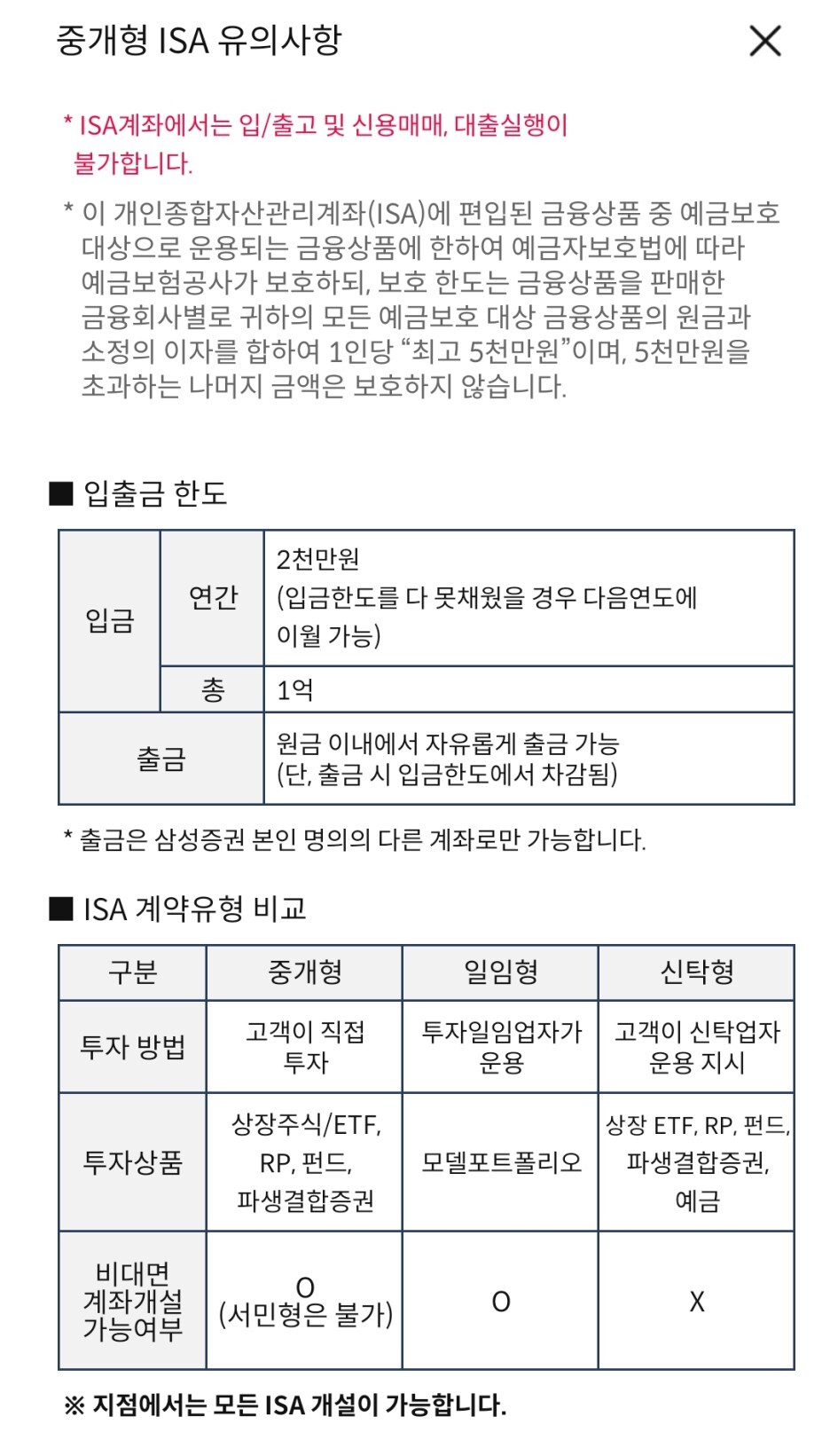 ISA 중개형에 대한 간단한 특징은 위의 표를 참조하시면 되고,