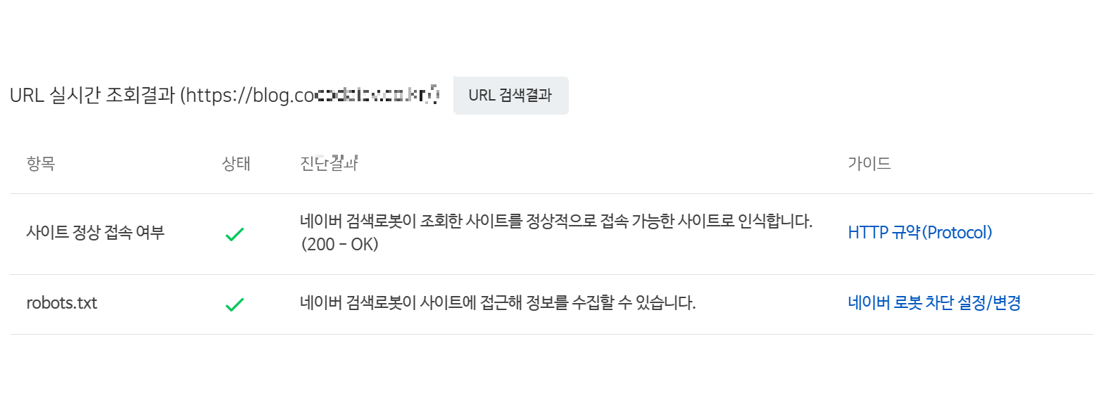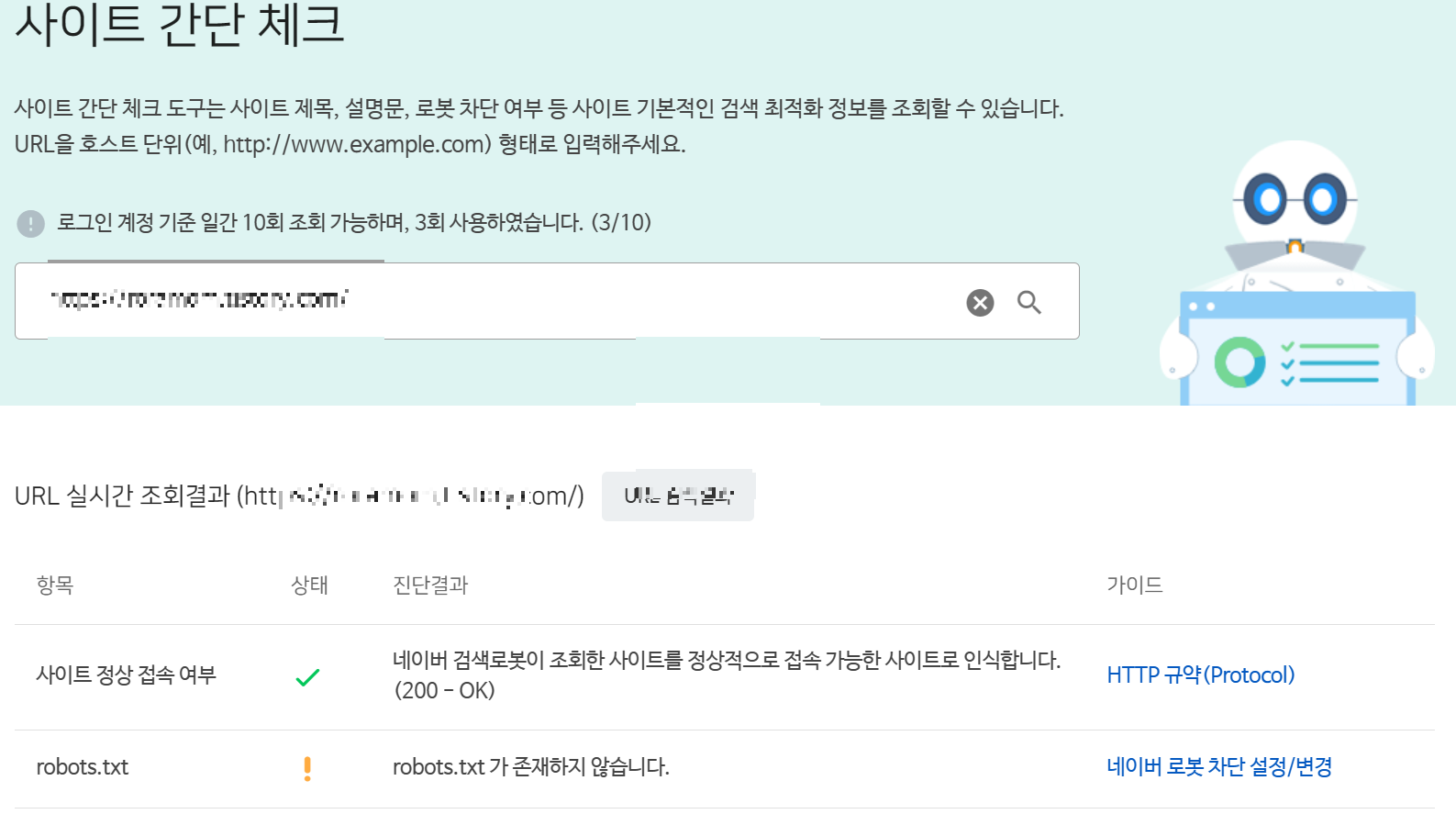 네이버 서치 어드바이저 - 사이트 간단 체크에서