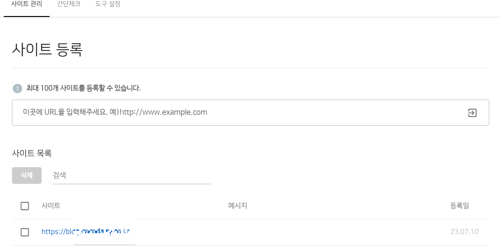 네이버 서치 어드바이저에서 '사이트 관리' 탭으로 들어가,